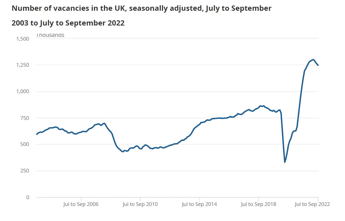 Back in April 2022, the Office for National Statistics reported that the number of job vacancies rose to 1,295,000, the highest it’s ever been. As of October, the number of job vacancies for the Q4 decreased by 46,000 to 1,246,000.